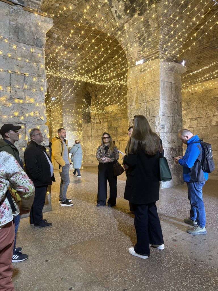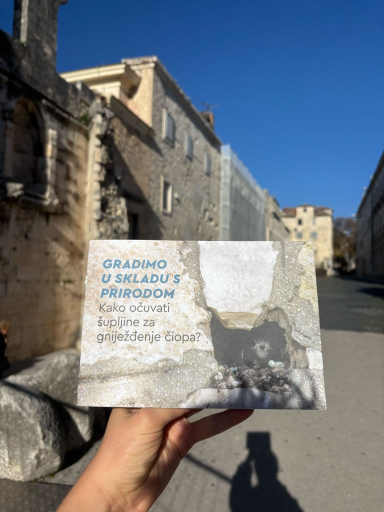 Kroz turu koju je organizovala Udruga SUNCE smo imali priliku da učimo o Splitu, ne samo iz ugla njegovog kulturnog i istorijskog nasleđa, već i iz ugla ekologije i održivosti. Saznali smo kako je nekadašnje odlaganje otpada u Dioklecijanovim podrumima očuvalo zidine palate, kako Peristil, glavni trg palate, kao arhiv zdanja arhitekture nastalih u različitim epohama svjedoči životu u Splitu, kako današnji povećani protok saobraćaja i rentijerstvo utiču na stanovnike grada, kao i to na koji način se može vršiti konzervacija starih zidina Dioklecijanove palate uz očuvanje gnijezda čiopa.